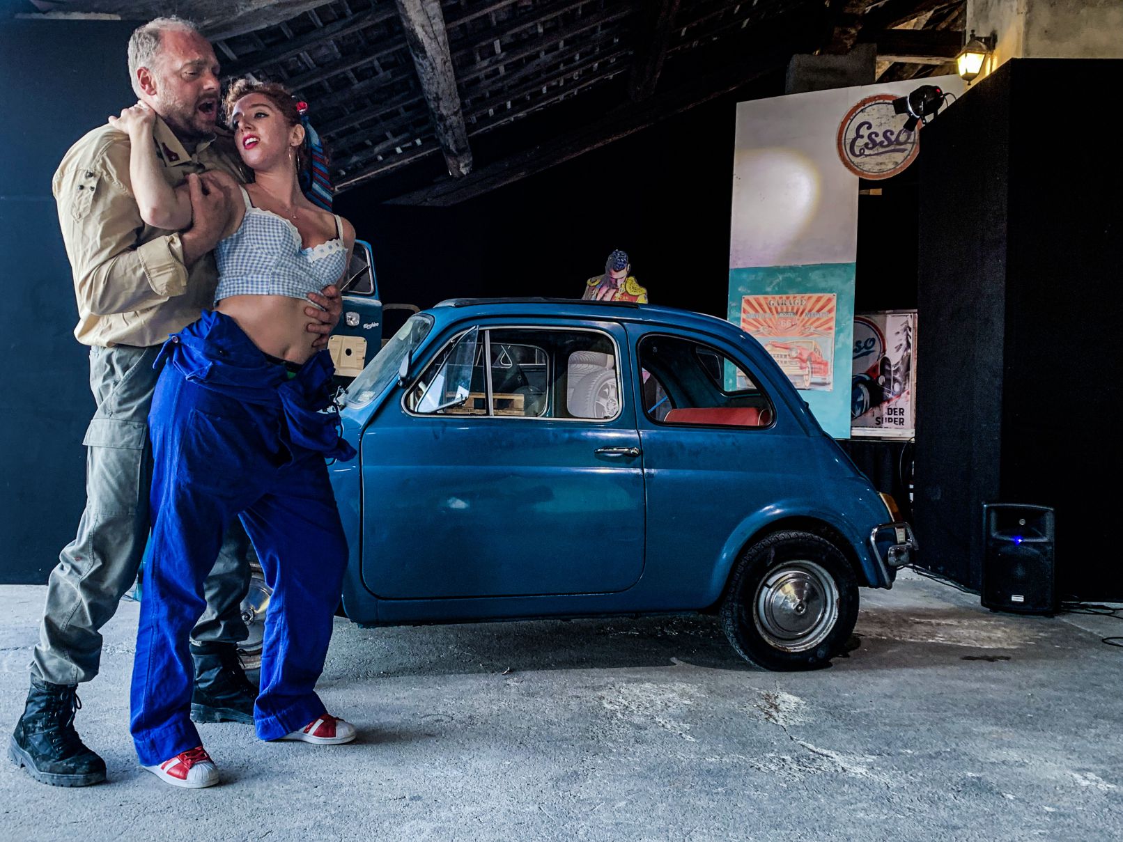 Una Carmen tascabile, chiaramente ispirata a quella di Peter Brook. Questa volta la regia è dell’Aliverta, quindi inconfondibile. Per definire i luoghi servono la carcassa di una Cinquecento e un chiringuito; per i personaggi, meno ancora: Carmen diventa una meccanica Anni Cinquanta, prima annoiata in tuta e poi panterona in zatteroni; Escamillo un venditore ambulante di salsicce con il suo triciclo a pedali, mentre José risulta al solito il più imbranato, ma stavolta è un imbranato fisicato in canotta. La riduzione drammaturgica rimpicciolisce l’opera ma non la tradisce; più che un bignami di Carmen, è un suo distillato, Carmen come archetipo di donna. Qui si potrebbe obiettare che non è questo il vero tema dell’opera, il cui soggetto è in realtà la libertà. L’importante è però che funzioni, e funziona benissimo, con la giusta dose di ironia e una regia molto «fisica» che trasforma il palcoscenico (che poi non c’è) in un ring attorno al quale si riunisce un pubblico un po’ guardone e un po’ avido di emozioni forti che gli vengono puntualmente servite, specie nel duetto finale, mozzafiato.